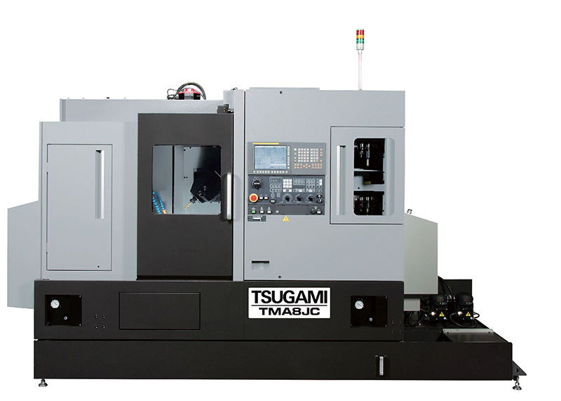 津上TMA8J是真正意思上的車削中間機床,刀具主軸能夠當車刀、又能夠當加工中間的主軸;搭配雙卡盤主軸,奇妙將車床和加工中間融會到一臺機床,其加工才能可窺見普通,主軸8寸卡盤、副主軸6寸卡盤,主軸5000rpm、11/15KW,副主軸5000rpm、5.5/11KW,刀具主軸10000rpm;東西主軸之B軸-15°-195°;機床分量8500KG.